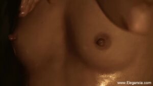A beautiful woman, her whole body wet and shiny after being massaged with CBD oil, begs for a cock b