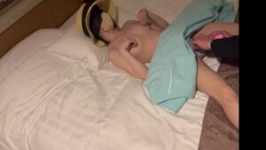 Japan beautiful woman enjoys playing games while licking her husband's dick on holiday.